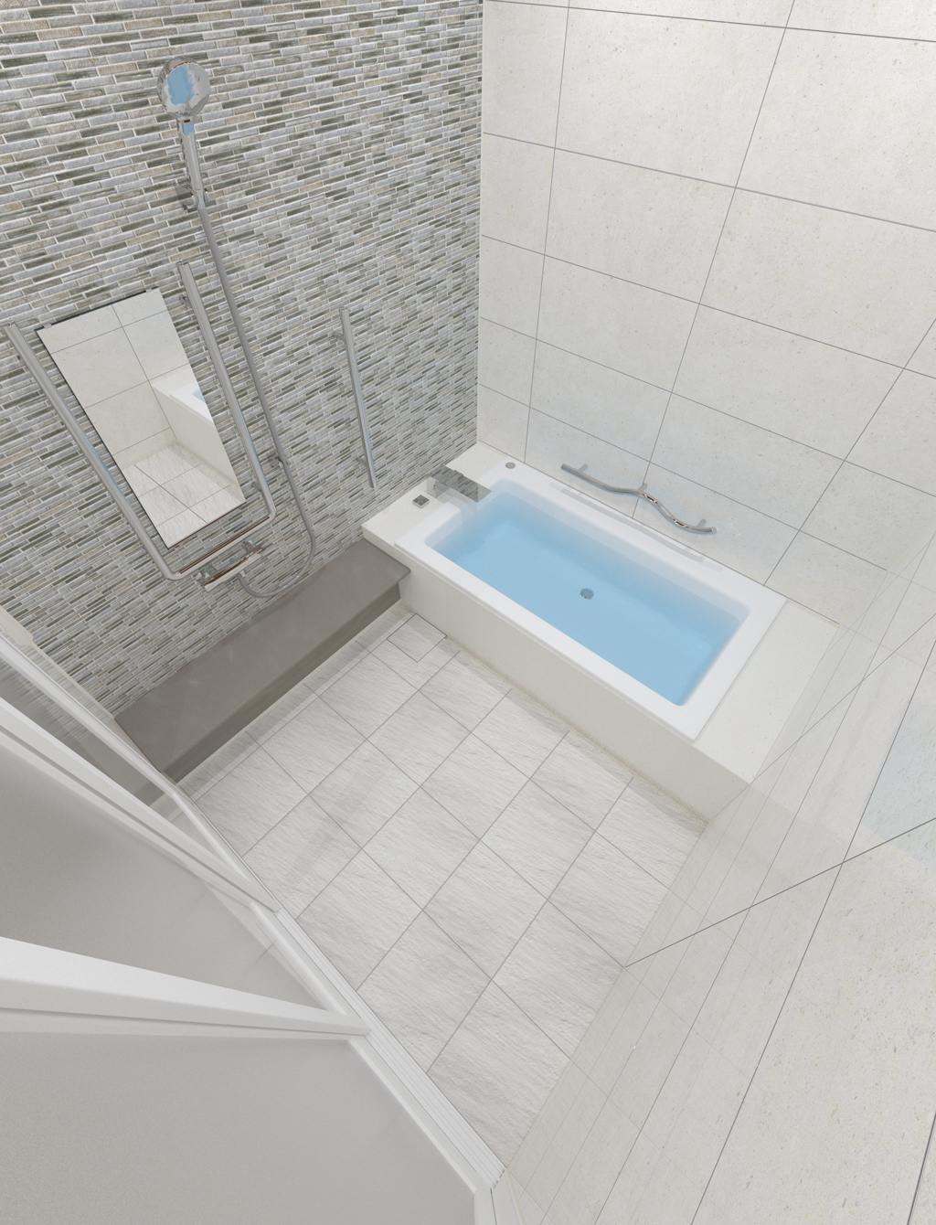 リフト付シャワーキャリーが設置可能な浴槽などをセレクトしているので、