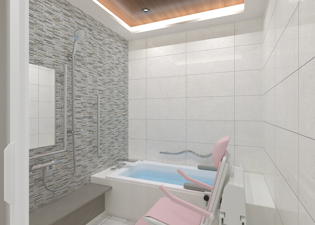 介護施設でも永く愉しんでいただけるデザイン浴室です。