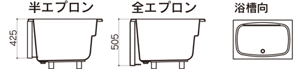 - エプロン付き浴槽をご注文の場合は、エプロンの位置をお選びください。