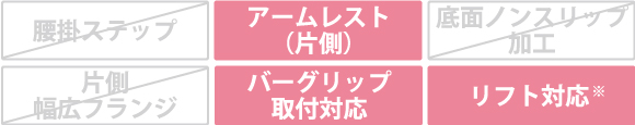 - バーグリップ付きの仕様は、アームレスト側一方にのみバーグリップが付きます。