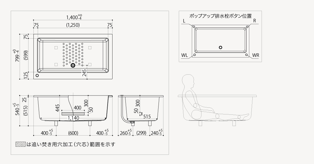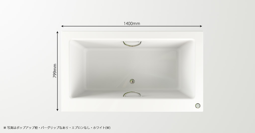 浴槽サイズ : 1400mm×799mm×540mm 価格【ゴム栓/バーグリップなし】:265,000円〜(税別)