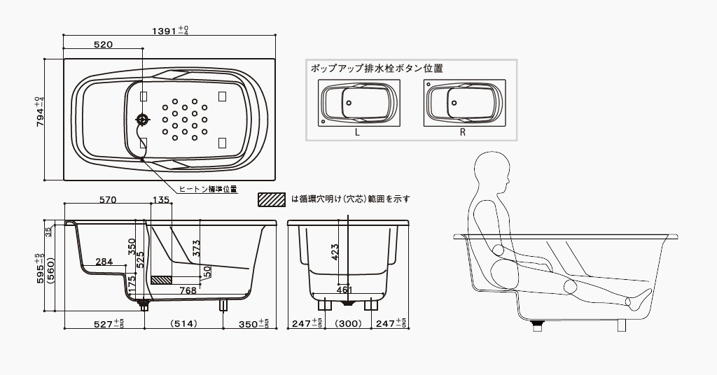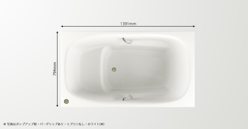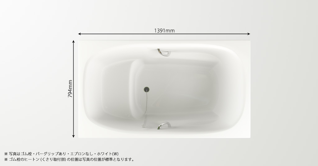 浴槽サイズ : 1391mm×794mm×595mm 価格【ゴム栓/バーグリップなし】:261,000円〜(税別)