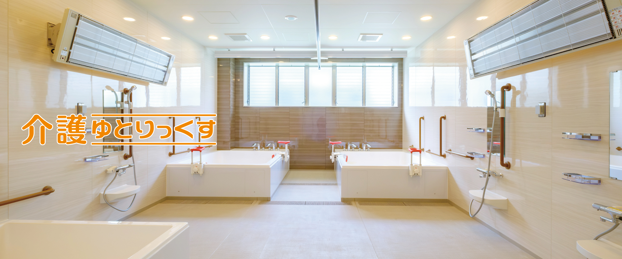 多目的に利用できる3.5m×5.3mの大型ユニット事例 広々したユニットには窓が三か所あり、明るい空間。 左右は1400サイズの個浴槽2台と中央の窓側に機械浴槽を設置していますが、縦長のユニットなので中央にゆとりがありま ... 続きを読む