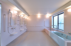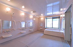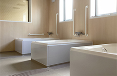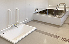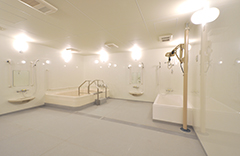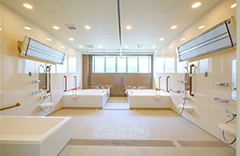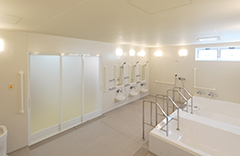 大型浴槽と機械浴槽を組み合わせた共同浴室事例