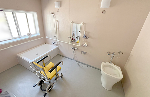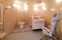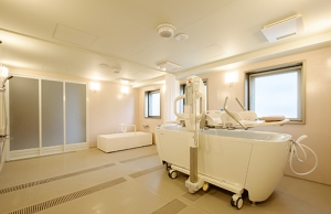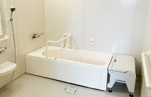 大型浴槽と特注浴槽、支柱式リフトもついた大型ユニット
