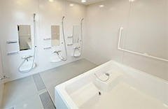 特注の“どこでも手すり”で自立入浴をサポート!多人数タイプのユニットバス