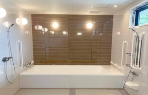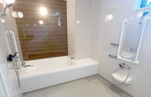 車いす利用者の為に、浴槽サイズや設備の配置にこだわったユニットバス!