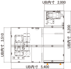 5,200mm×5,400mmの浴室に寝浴タイプの介護入浴機器とリフト浴を設置したプランです。