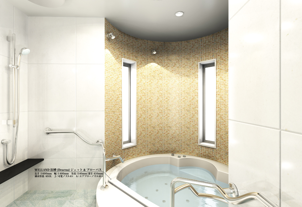 - WELLAND浴槽(Dearna)ジェット&ブローバス、ワンプッシュ排水栓
