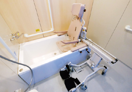 標準浴槽は、いうら社リフト付シャワーキャリーLS-300/LS-500の設置にも対応しています。