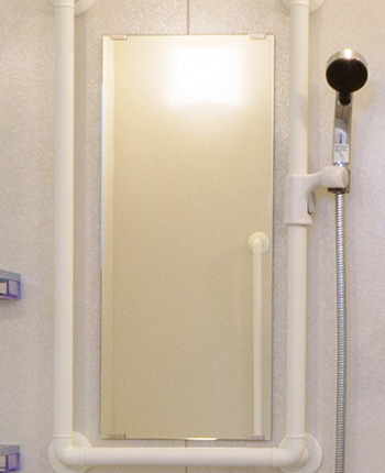 介助する人が洗体中に入浴者の様子をミラーごしに確認することができます。