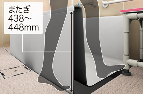 3出入りしやすい「浴槽またぎ高さ」 標準装備
