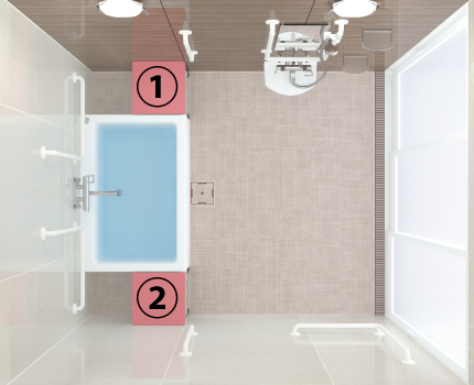 - 1.リフト付きシャワーキャリー※2の設置が可能です。※3※4