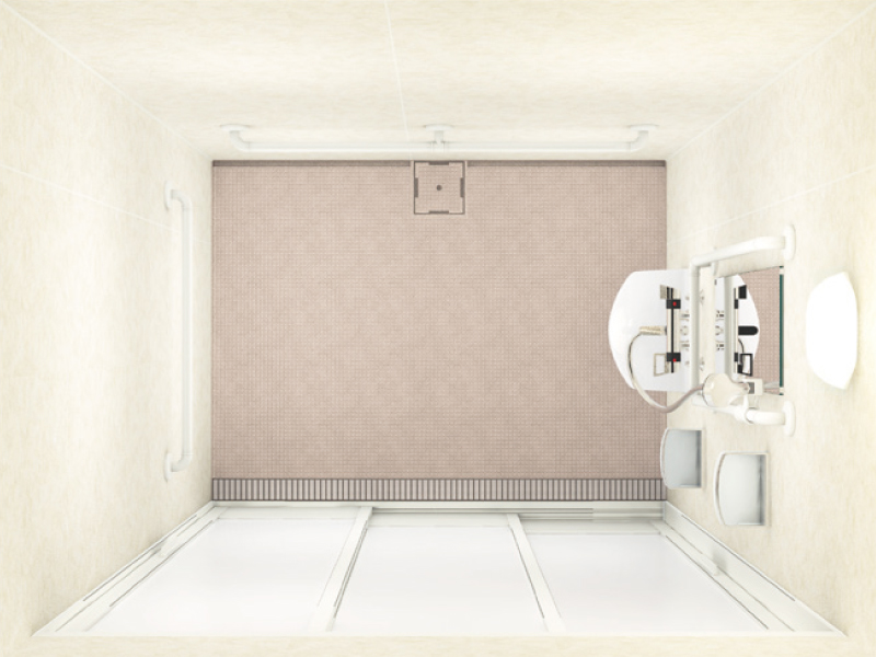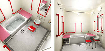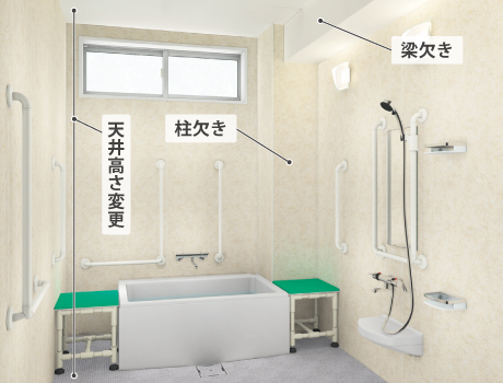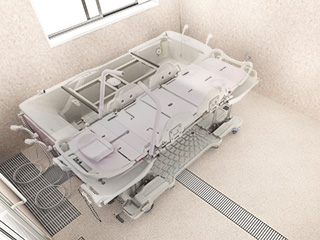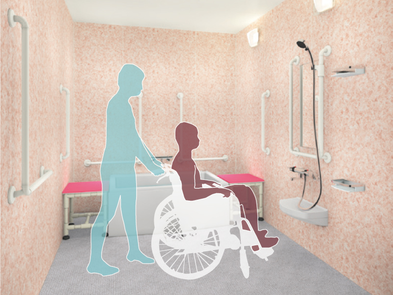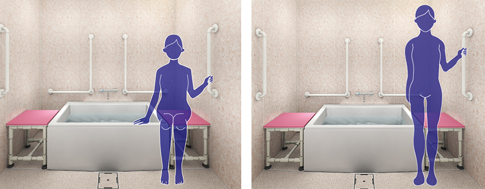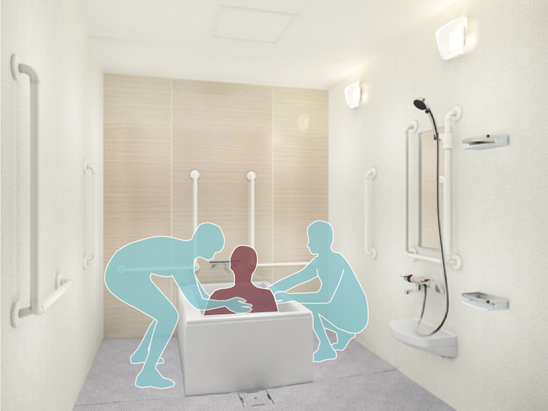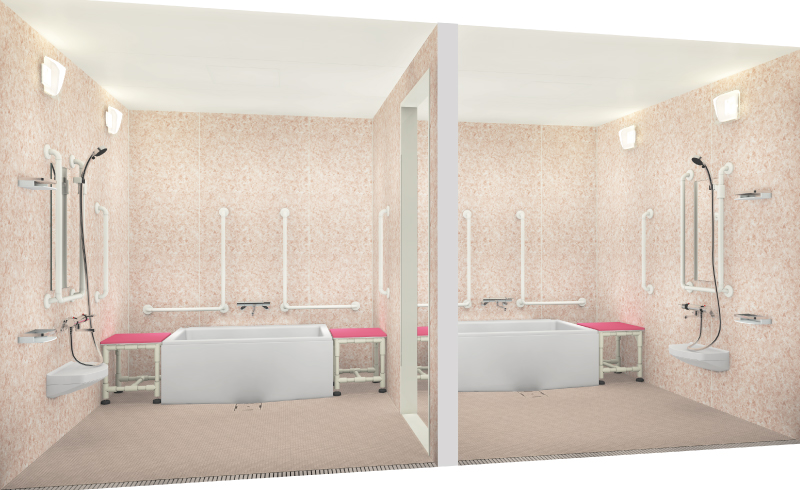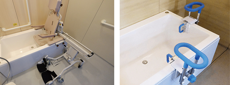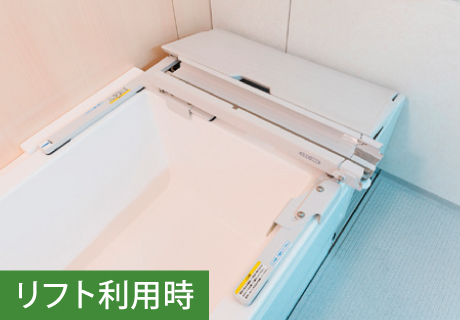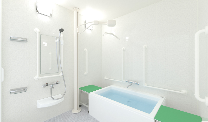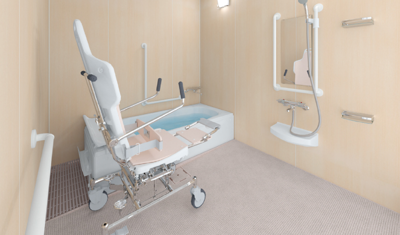 標準浴槽は、いうら社リフト付シャワーキャリーLS-300/LS-500の設置にも対応しています。