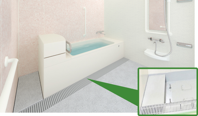 標準装備のストレートエプロンは、リフト設置や挟み込み手すりを簡単に設置することができます。