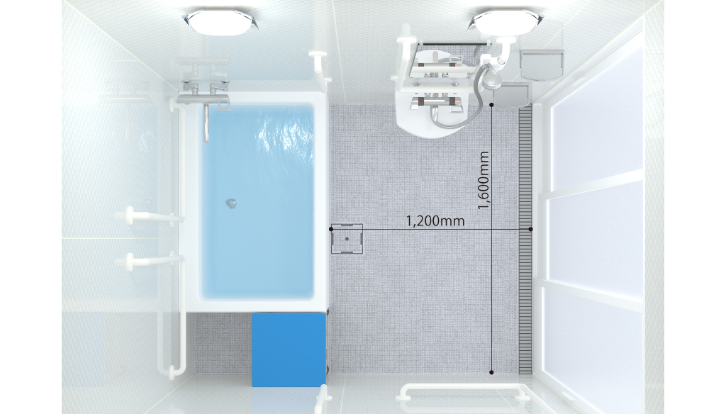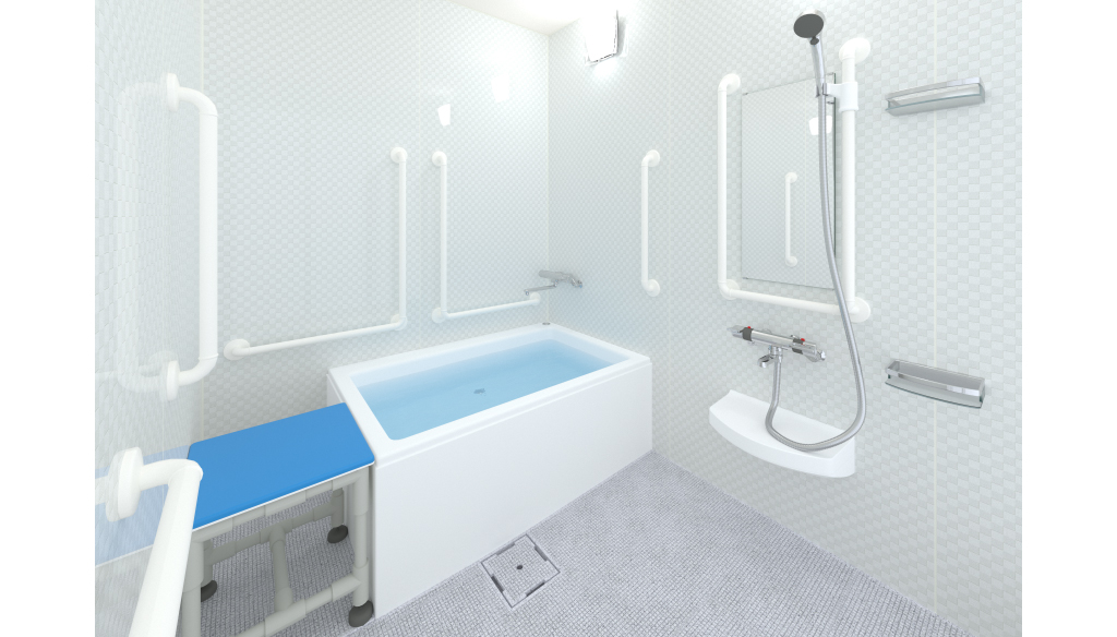 リフトリフト付シャワーキャリー浴槽変更 システムバス内寸:1600mm×2000mm(SYB-1620A01-L/R) 標準プラン:1,860,000円(税別)