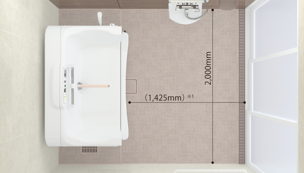 ※2:洗い場パンと浴槽設置面に段差ができるため、トランスファー手すりはご使用できません。