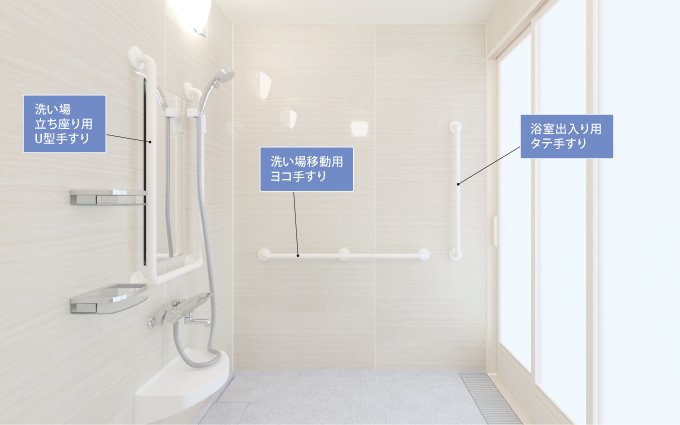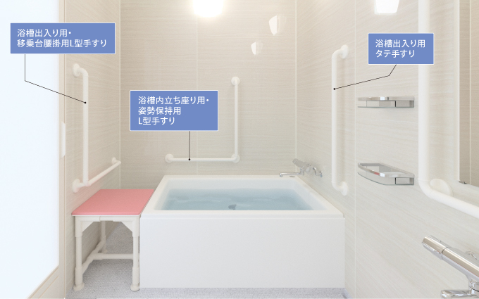 浴槽内での姿勢を安定させ、浴槽への出入りをサポートします。