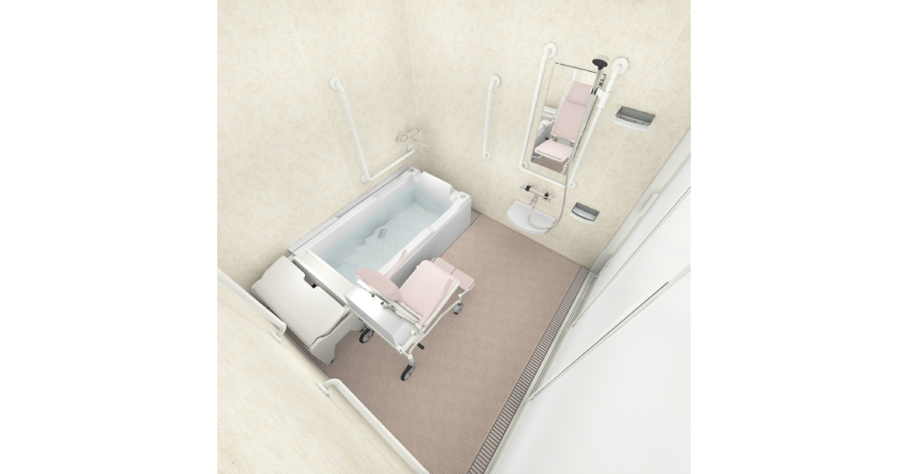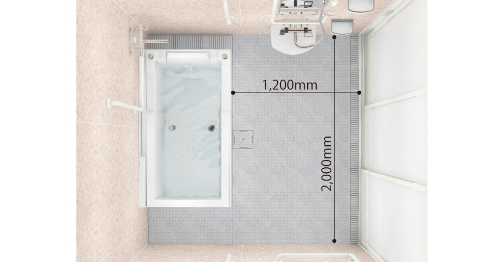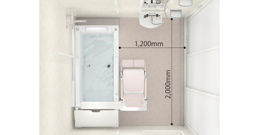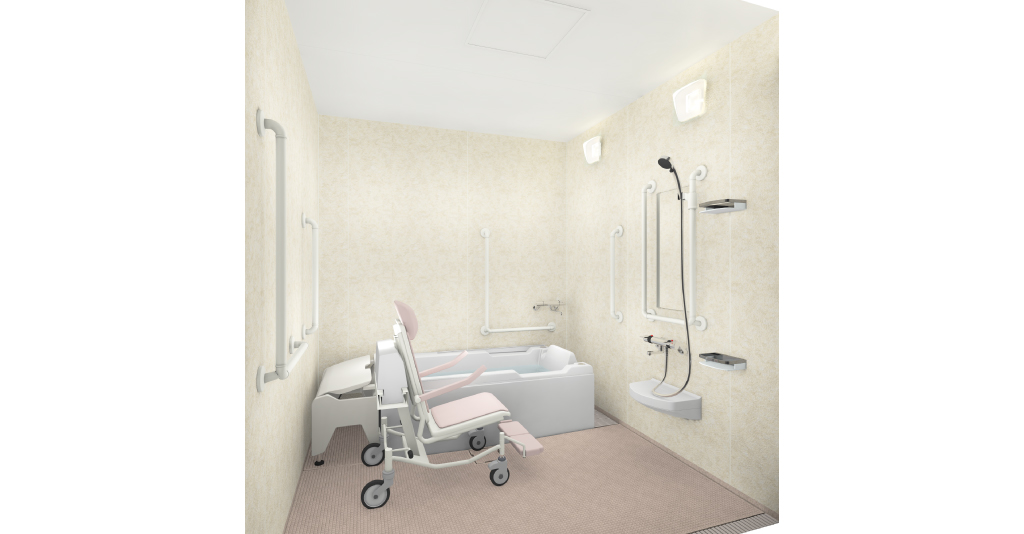 標準的な一般浴プランです。リフト付シャワーキャリー(㈱いうら)の後付けが可能です。