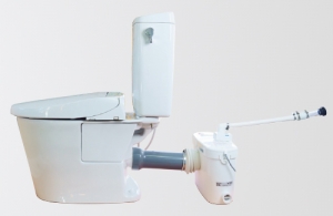 介護、リハビリ用のリフォームとして寝室や、地下や、排水勾配が取りにくい場所など、下水道配管や浄化槽が遠くにあっても、トイレを使いやすい近くに設置できます。