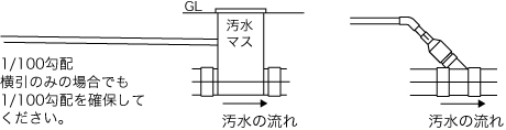 ※浄化槽・下水道接続のときは、汚水マスに穴をあけて入れ込んでください。