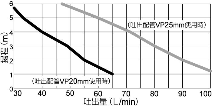 ポンプ吐出量は揚程、吐出口径によって変わります。ポンプ吐出量≧合計流入量となるようにしてください。