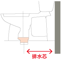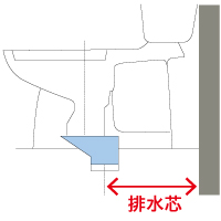 ❶後ろの壁から排水管(便槽から立ち上がっている配管)中心までの距離(排水芯)を調べます。