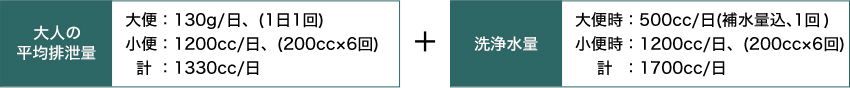 - ※洗浄便座をご使用の場合は、1人1ヶ月あたり15ℓ~20ℓ余分に使用水を加算してください。