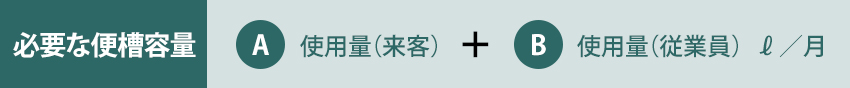 | その他の場合 | 1日のトイレ使用回数(利用人数)×0.4L×月の稼働日数×1.2(余裕率) | |||