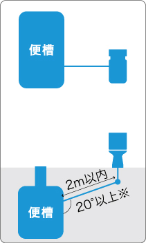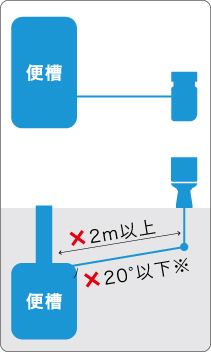 ※勾配20°以上(水溜機構タイプのトイレ)勾配30°~40°以上(バランス式開閉弁タイプのトイレ)