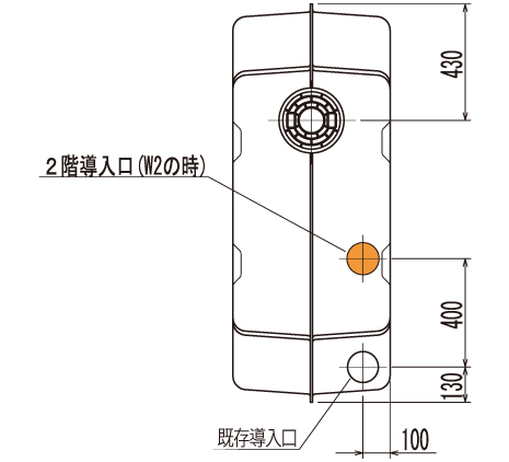 ※追加導入口の加工寸法をご指定ください。標準は下図の追加導入口の位置となります。