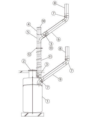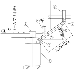 ※導入管勾配を20°にする場合は、別途部品「10°ブッシング100」が、1穴タイプには2個、2穴タイプには4個必要です。