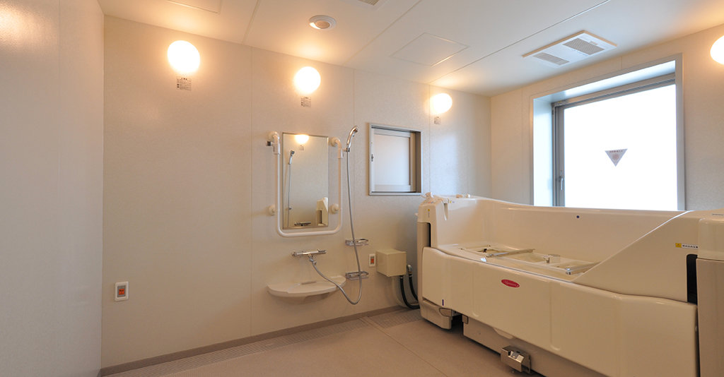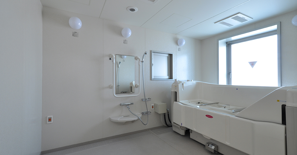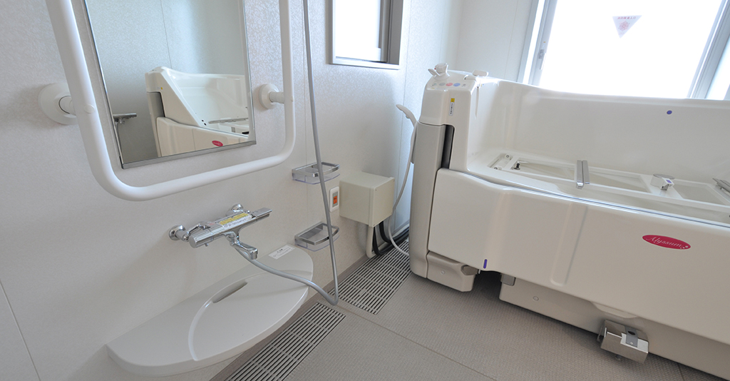 大型ユニットで座ったまま介助入浴が可能!衛生的設備も完備しています。 約3.5m×4.5mある大型ユニットに座ったまま介助入浴が可能な「トゥッティ」を設置。 天井は通常よりも高めの2.5mで、柱欠きに対応しているため、広 ... 続きを読む
