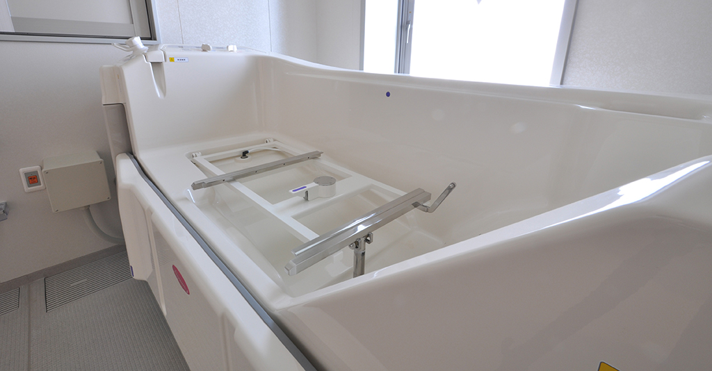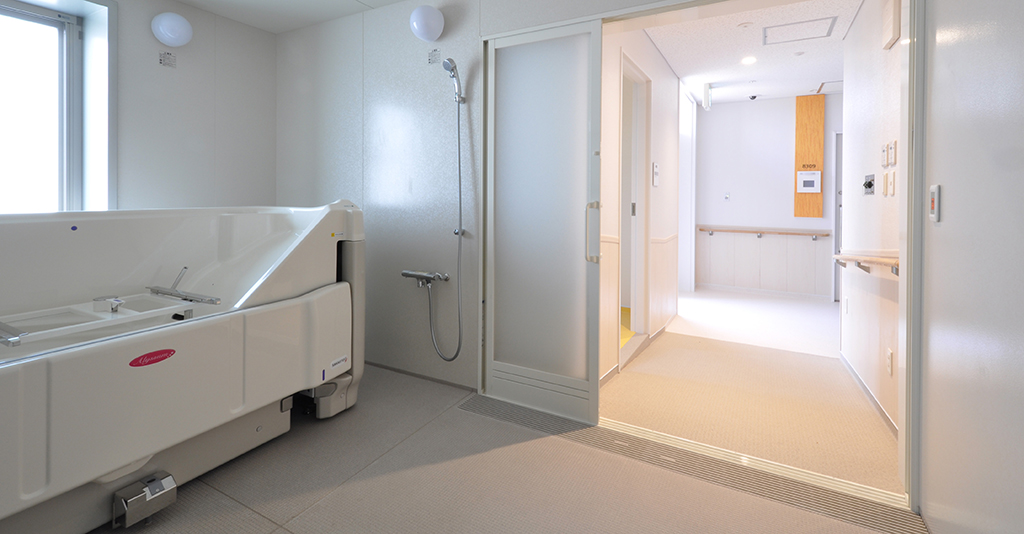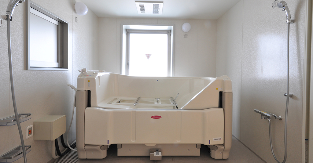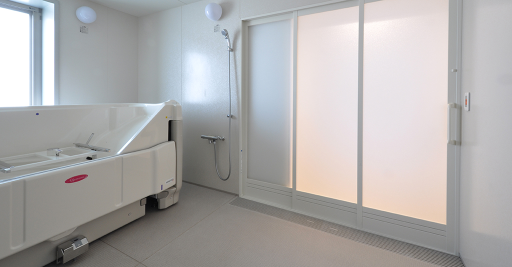 介護入浴機器(シャワー浴タイプ)と大型浴槽の設置に対応 6.1m×7mの広々としたユニット内にシャワー浴タイプの介護入浴機器「セレーノ」と2000×1600サイズの大型浴槽を設置。 「セレーノ」はストレッチャーに寝たまま ... 続きを読む