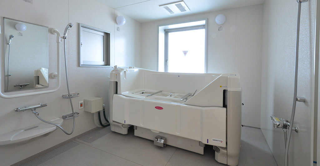 介護入浴機器(シャワー浴タイプ)と大型浴槽の設置に対応 6.1m×7mの広々としたユニット内にシャワー浴タイプの介護入浴機器「セレーノ」と2000×1600サイズの大型浴槽を設置。 「セレーノ」はストレッチャーに寝たまま ... 続きを読む