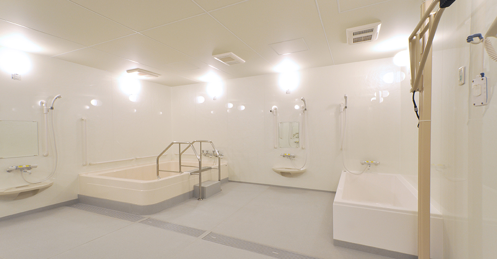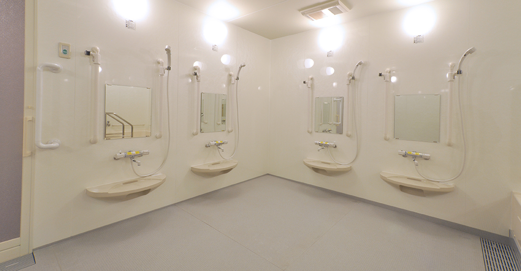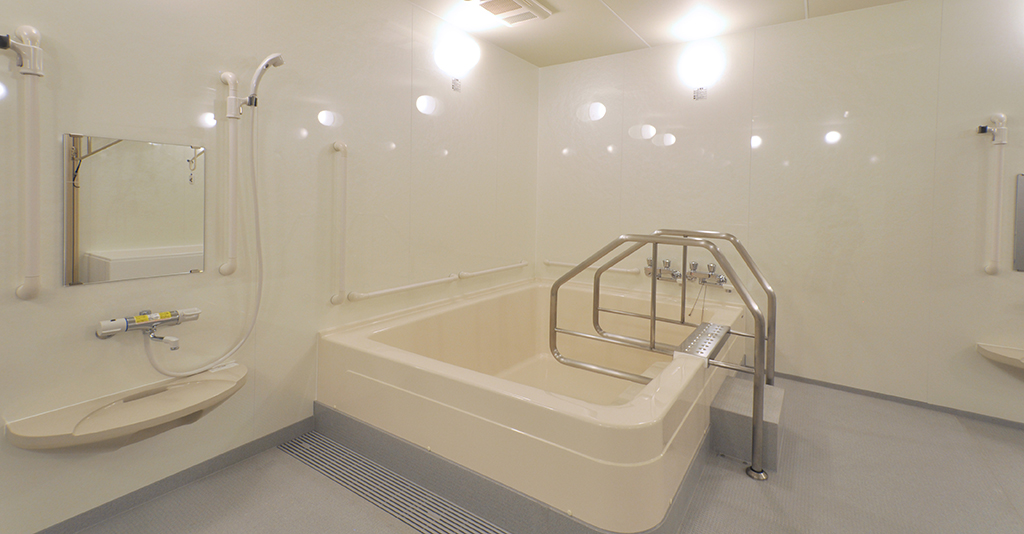 大型ユニットで座ったまま介助入浴が可能!衛生的設備も完備しています。 約3.5m×4.5mある大型ユニットに座ったまま介助入浴が可能な「トゥッティ」を設置。 天井は通常よりも高めの2.5mで、柱欠きに対応しているため、広 ... 続きを読む
