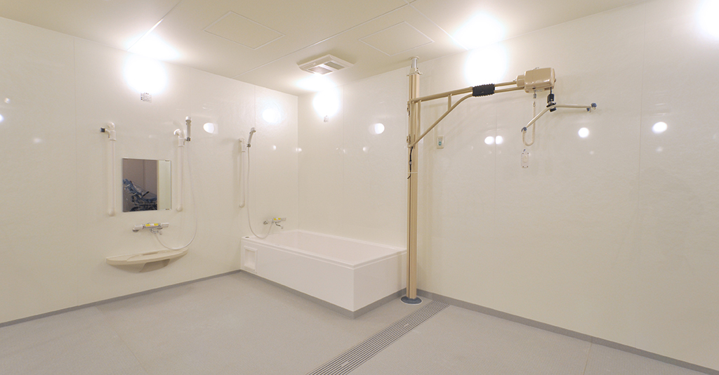 介護入浴機器(シャワー浴タイプ)と大型浴槽の設置に対応 6.1m×7mの広々としたユニット内にシャワー浴タイプの介護入浴機器「セレーノ」と2000×1600サイズの大型浴槽を設置。 「セレーノ」はストレッチャーに寝たまま ... 続きを読む
