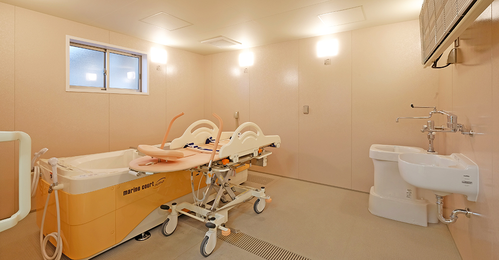 大型ユニットで座ったまま介助入浴が可能!衛生的設備も完備しています。 約3.5m×4.5mある大型ユニットに座ったまま介助入浴が可能な「トゥッティ」を設置。 天井は通常よりも高めの2.5mで、柱欠きに対応しているため、広 ... 続きを読む