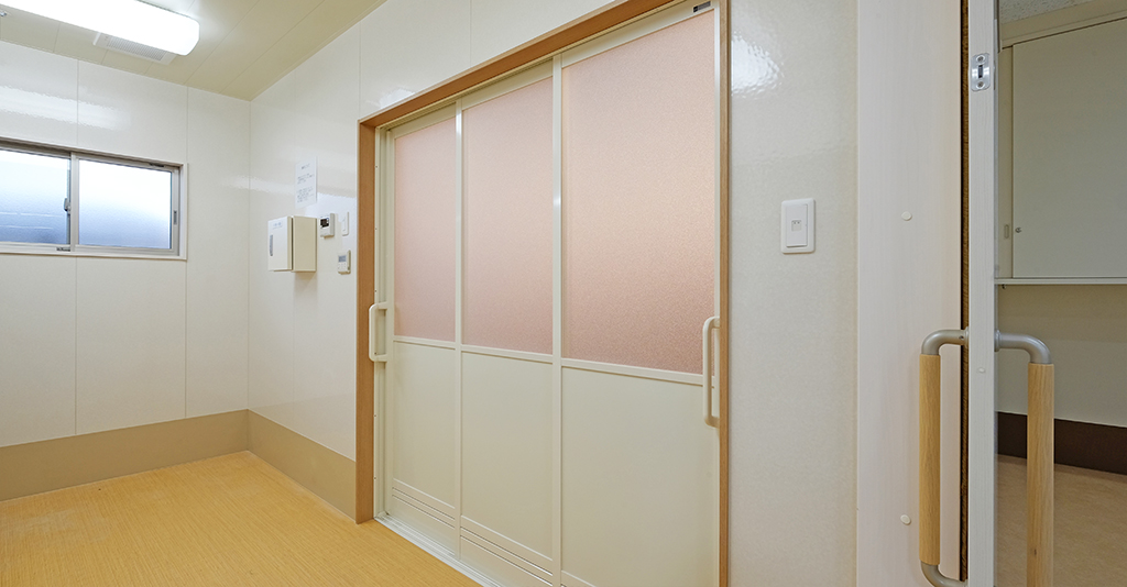 リフト動線に配慮したシステムバス病院の新築移転工事に伴い、2000×2000サイズの浴室内に機械浴槽ブランバスとリフト付シャワーキャリーを設置しました。 両開きタイプの3枚引き戸を採用することで、機器搬入や介助動線を妨げ ... 続きを読む