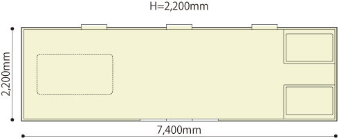 ユニットサイズ:2200mm×7400mm×高さ2200mm