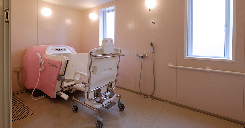 大型ユニットで座ったまま介助入浴が可能!衛生的設備も完備しています。 約3.5m×4.5mある大型ユニットに座ったまま介助入浴が可能な「トゥッティ」を設置。 天井は通常よりも高めの2.5mで、柱欠きに対応しているため、広 ... 続きを読む
