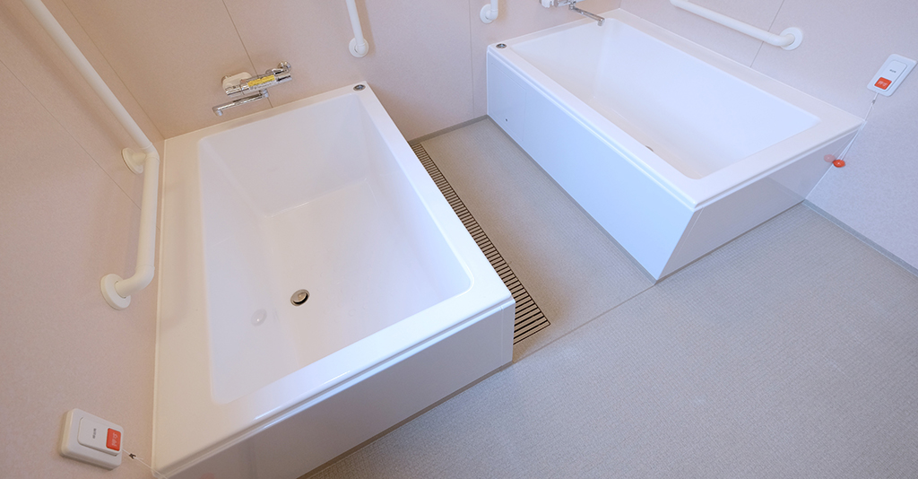 特注のSUS製手すりとステップ付きのFRP製大型浴槽を2台設置2000サイズのステップ付きFRP製大型浴槽を2台設置しました。入浴機器は座位入浴タイプの「アラエル」を導入。 身体が不自由な方でもリハビリをしながら安心して ... 続きを読む