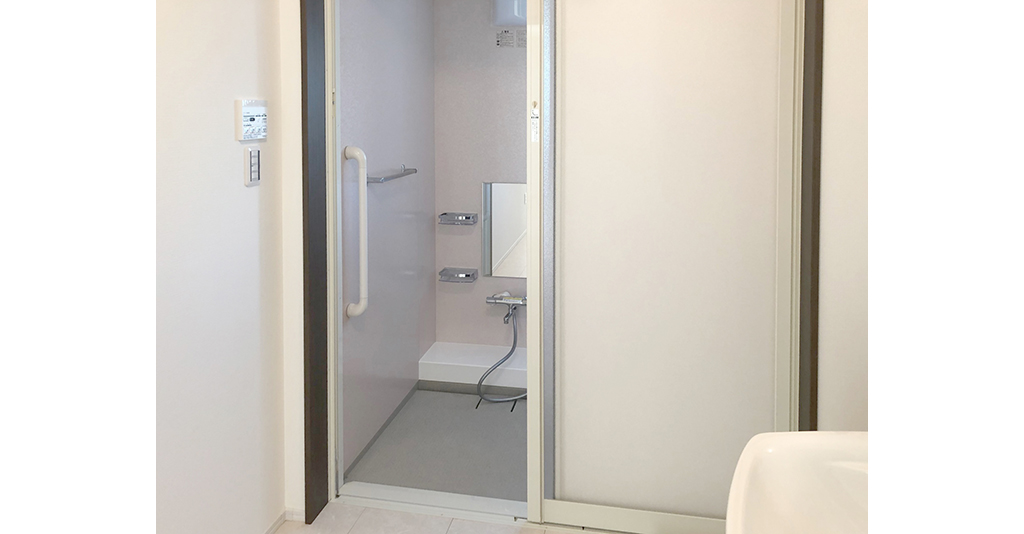 リフト動線に配慮したシステムバス病院の新築移転工事に伴い、2000×2000サイズの浴室内に機械浴槽ブランバスとリフト付シャワーキャリーを設置しました。 両開きタイプの3枚引き戸を採用することで、機器搬入や介助動線を妨げ ... 続きを読む