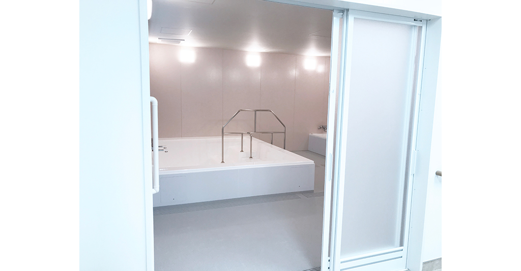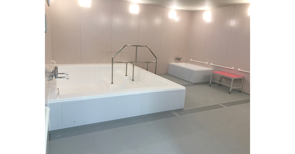 Works 大型浴槽と個浴浴槽を設置する事で、自立入浴者と介護入浴者のサポートを一つに