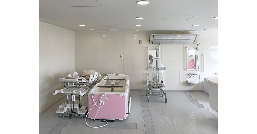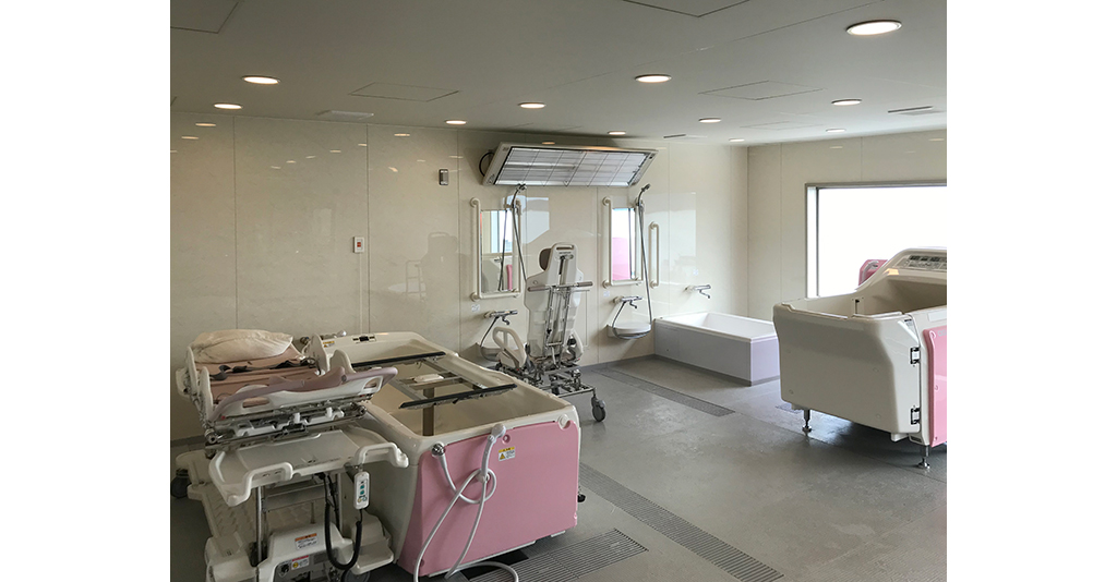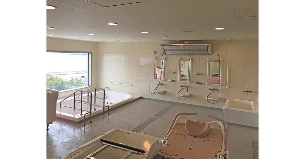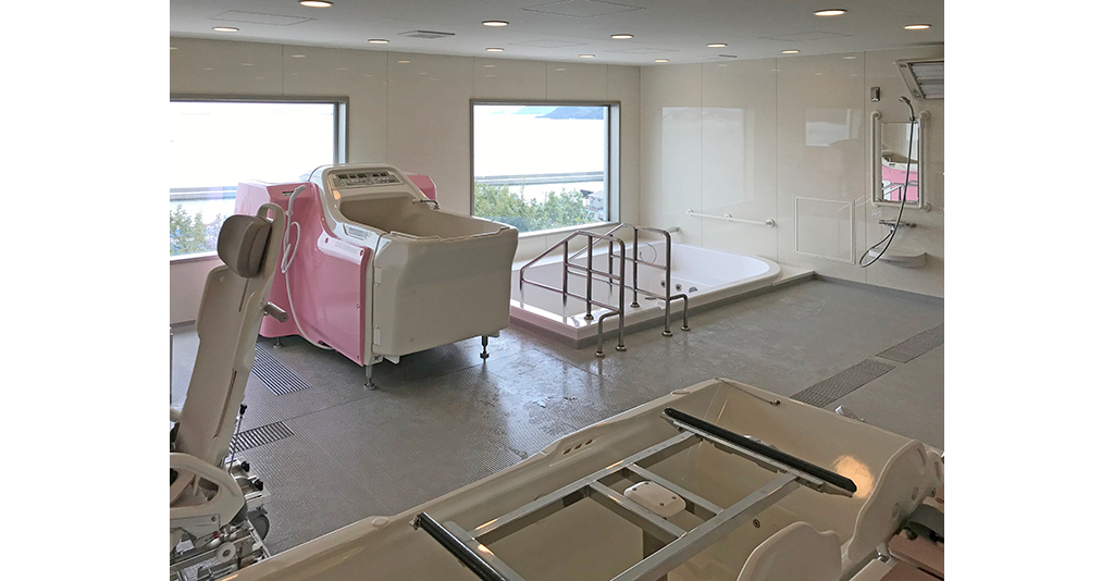 介護入浴機器(シャワー浴タイプ)と大型浴槽の設置に対応 6.1m×7mの広々としたユニット内にシャワー浴タイプの介護入浴機器「セレーノ」と2000×1600サイズの大型浴槽を設置。 「セレーノ」はストレッチャーに寝たまま ... 続きを読む