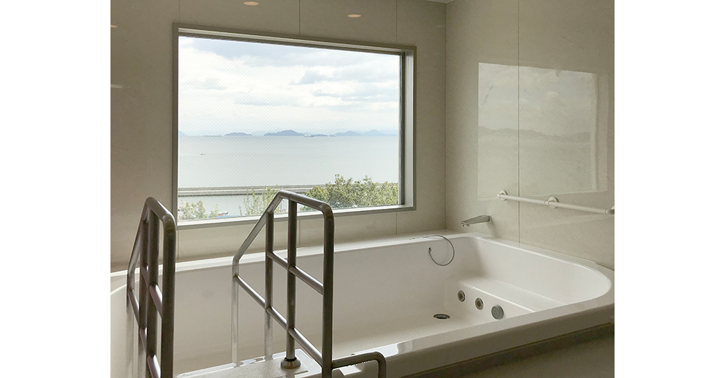 自立入浴を支援し将来的な機械浴導入にも対応約5.5m×5.5mの特注大型浴槽を備えた共同浴場タイプのユニットです。 浴槽は柱欠きに対応した形状で、内部にステップを設けることで出入りをしやすくし、底面にはノンスリップ加工を ... 続きを読む