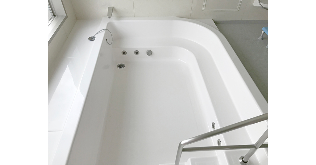 - 3000×1800サイズのFRP製特注浴槽(ステップ付)を設置