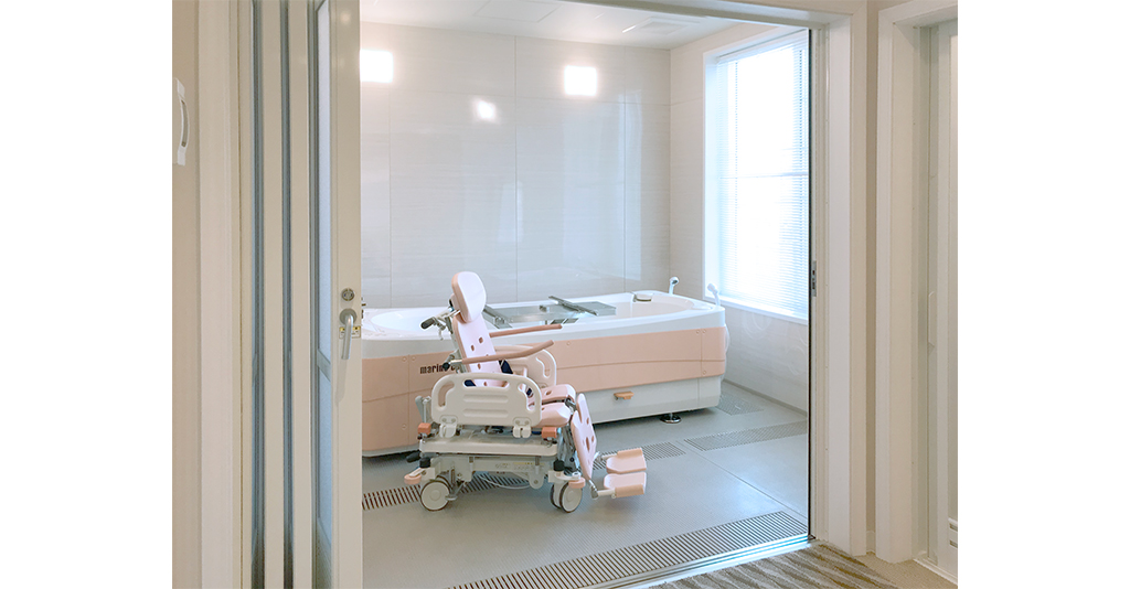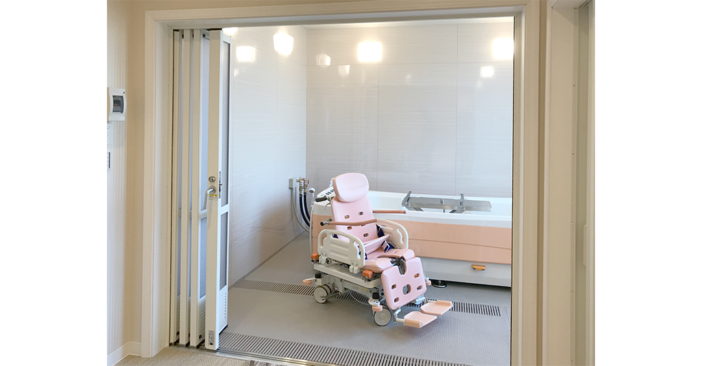 大型ユニットで座ったまま介助入浴が可能!衛生的設備も完備しています。 約3.5m×4.5mある大型ユニットに座ったまま介助入浴が可能な「トゥッティ」を設置。 天井は通常よりも高めの2.5mで、柱欠きに対応しているため、広 ... 続きを読む