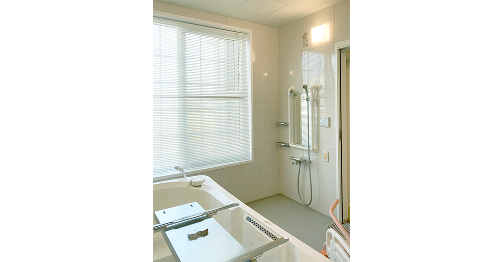 介護入浴機器(シャワー浴タイプ)と大型浴槽の設置に対応 6.1m×7mの広々としたユニット内にシャワー浴タイプの介護入浴機器「セレーノ」と2000×1600サイズの大型浴槽を設置。 「セレーノ」はストレッチャーに寝たまま ... 続きを読む