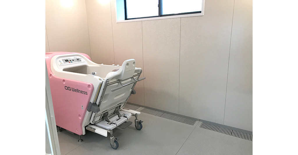 介護入浴機器(シャワー浴タイプ)と大型浴槽の設置に対応 6.1m×7mの広々としたユニット内にシャワー浴タイプの介護入浴機器「セレーノ」と2000×1600サイズの大型浴槽を設置。 「セレーノ」はストレッチャーに寝たまま ... 続きを読む